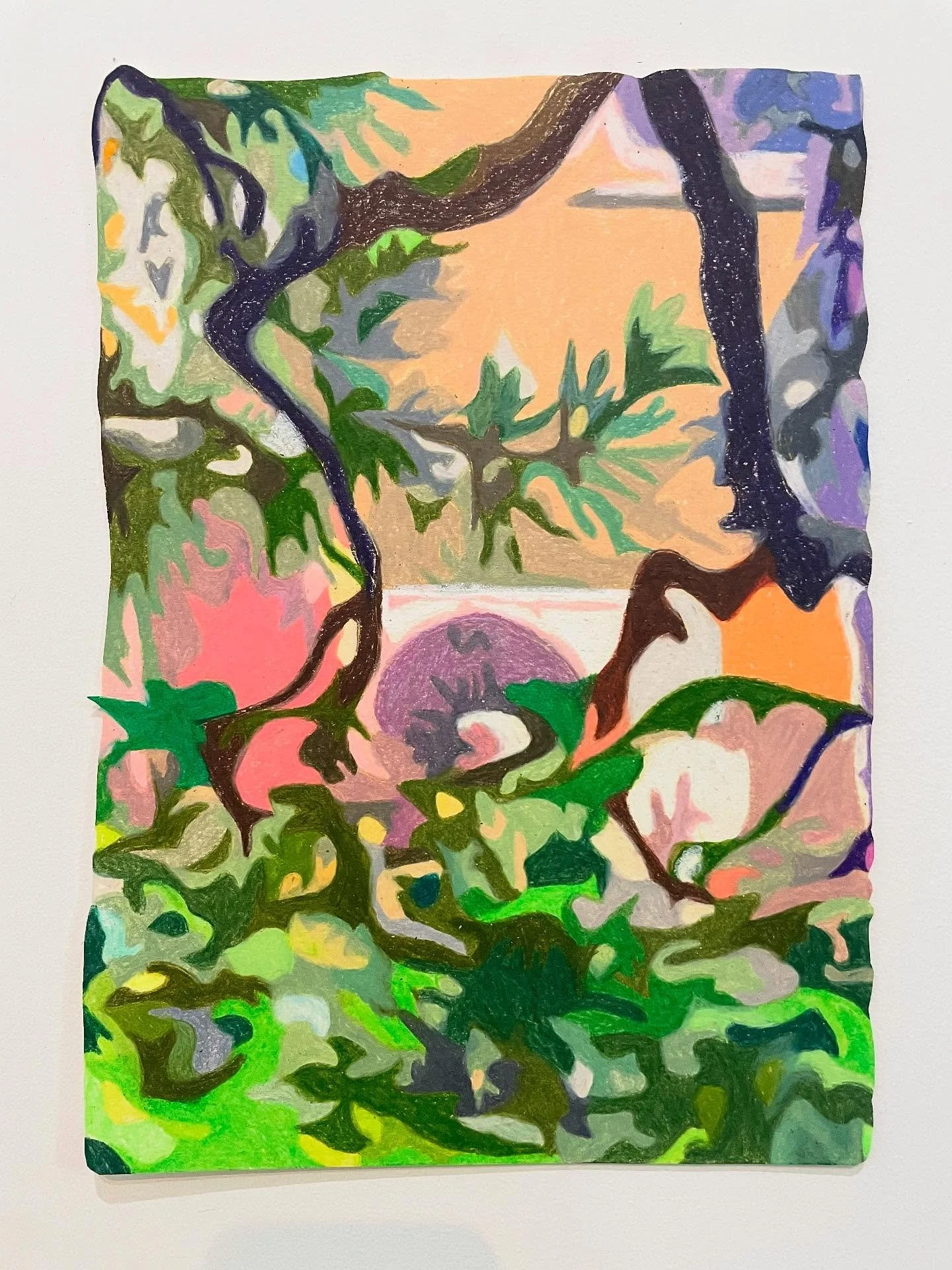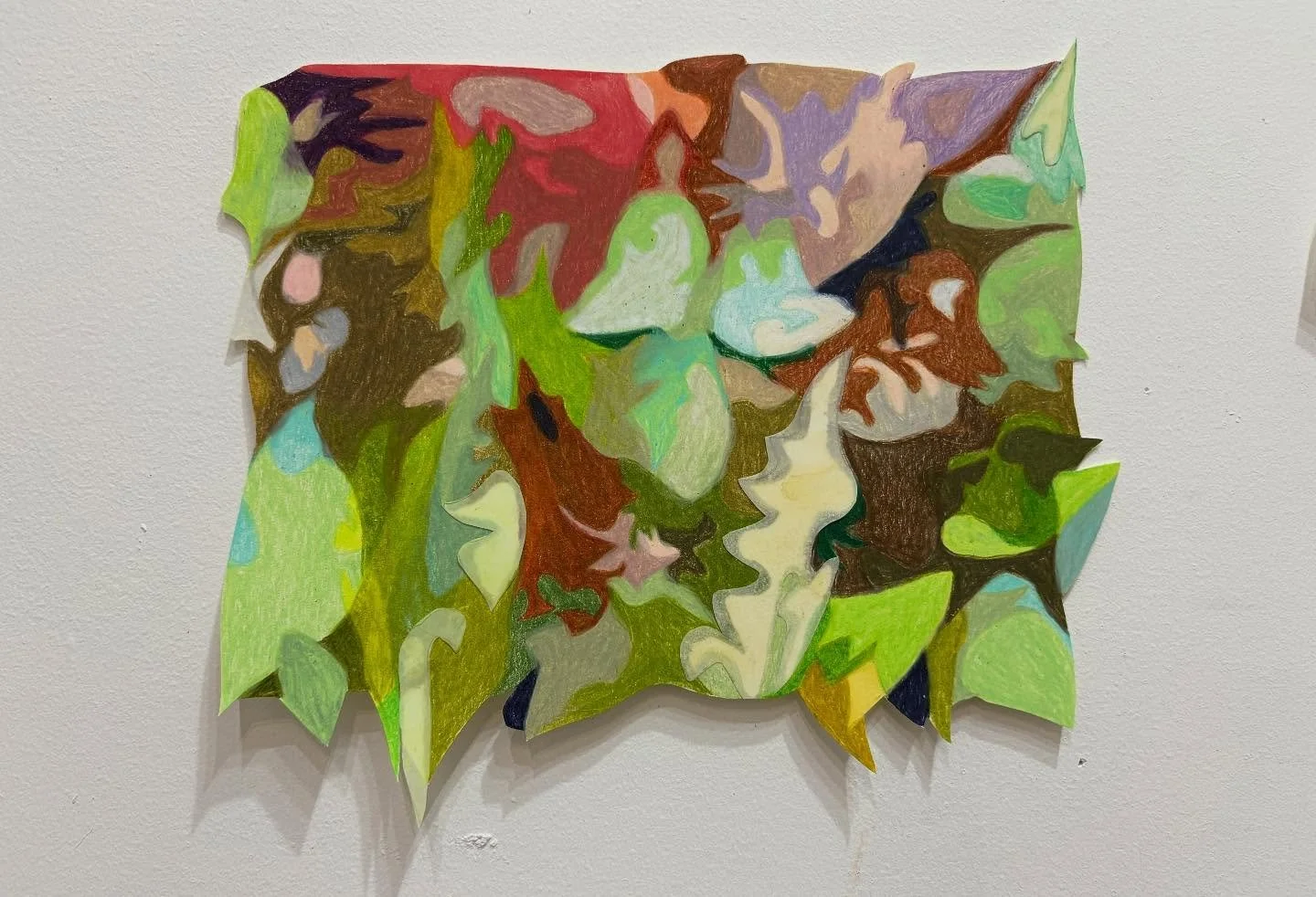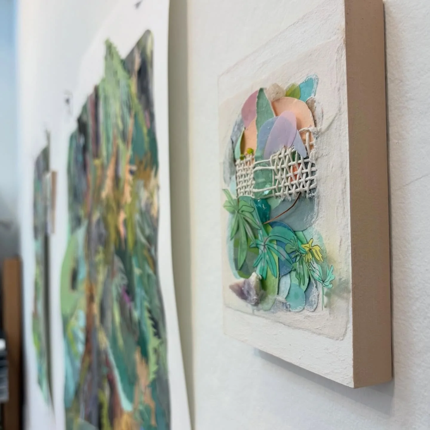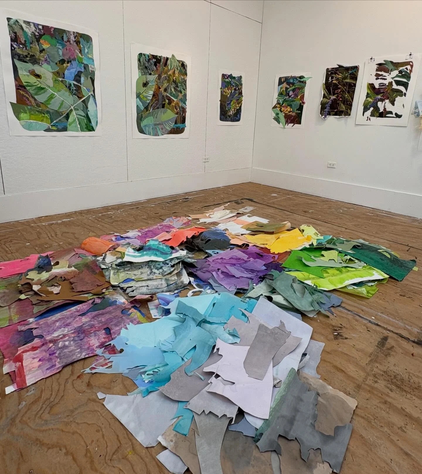 Each piece I make begins with a photograph: an artifact from the real world, a stand-in for what “is”—light and shadow captured by a mechanical lens. After applying digital filters to manipulate color and draw out interesting shapes, I translate the resulting imagery using self-taught methods, the illusion of space emerging slowly over a period of time. By leaving evidence of the labor that created it, I want to infuse that which may be too subtle or quiet to be seen with an aura of presence. Collage is a language for the disenfranchised to imagine new worlds which include them; re-pulping celebrates the decorative, the feminine, metaphors for the overlooked: the marginalized, the introverted. It celebrates the poetry of everyday life.